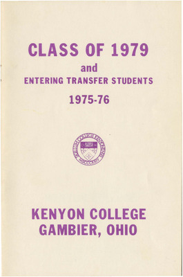 Entering Freshmen & Transfer Students - Kenyon College 1976-77