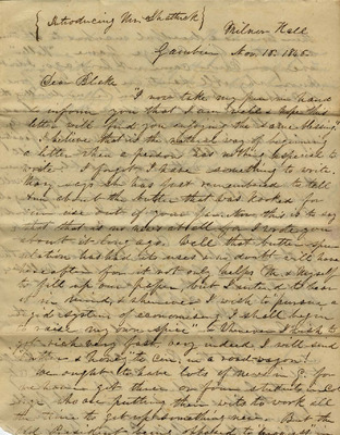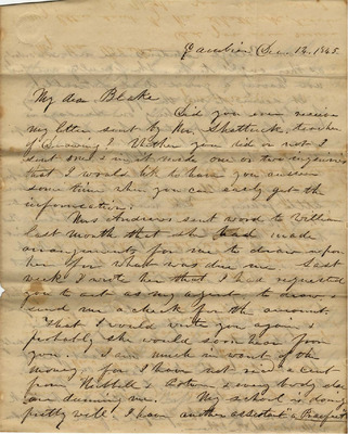 This collection of letters was written by and to The Rev. Alfred Blake and members of his family. Transcripts were completed by John D. Green, a descendant of Blake via his son, Charles Royal Blake.