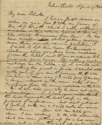 Letter from Buffalo, New York to Leonard Blake in Gambier, Ohio