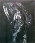 This painting was first showcased in the artist's exhibit "A Story of Two and a Half Weeks" along with similar black and white paintings of nude figure. It depicts a naked figure bent over, baring its backside to the audience. It is constructed in a monochrome colorization with the painter's signature jagged, bold, and erratic brush strokes in an expressionist manner. There is a fantastical element to this painting. While the focus is on the figures rear, closer inspection reveals that the shoulders of the figure are abnormally thin and flat, presenting an overall fragile looking frame. Meanwhile, the figure's rear is disproportionately round and healthy-looking. The placement of the highlights suggest that there are multiple light sources, which is a characteristic present in many of the artist's works. (Nicole Wang '26)