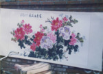 This is one of the fourteen photographs taken from the art fair "King of Paintings---'Peonies'", which was held in commemoration of the XX anniversary of Mao Zedong's "Speech at the Forum of Art and Literature in Yan'an" by the artist. This conceptual art shows the artist's sarcasm to commercial paintings in China in the late 20th century. (Yifan Shang '25)