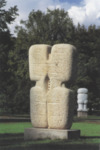 The "Meditation" is a 260-cm-high, rough, monumental-like stone sculpture created from 1988 to 1993, after the artist emigrated to Austria. Its voluptuous shape implies Sexuality and the beauty of the female body. Its lined holes in the center gives it a breath of fresh air, contrasted with its heavy material of stone. (Zhuocheng Jiang '26)