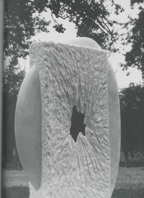 This "moon" series was created in 1992, during the period of the artist's exploration of modernist sculpture. They are all made up of crystalline Marble and share similar artistic components. The general feature is that they can all be broken down into two parts, a sleek and smooth part, as opposed to the rough, aggressive part. The sleek part is always inlaid in the rough part. The dynamics of two parts always congregate to the geometric center of the piece with a hole as a signal. The artist’s early works are mostly related to the abstract expression of sexuality. This series seems to be one of the cases, which makes a contrast and/or intimate relationship between two genders, via their skin, rough one vs. smooth one. For details, please refer to Please refer to p. 254-256 Zhou, Y. (2020). An Art Hurricane: The Avant-Garde Movement (1985–1989). In: A History of Contemporary Chinese Art. Chinese Contemporary Art Series. Springer, Singapore. https://doi.org/10.1007/978-981-15-1141-7_4. (Zhuocheng Jiang '26)