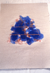 In the center of presumably handmade paper, the artist had painted a white trapezoid which she then painted with splotches of watercolor and tea. The ink was allowed to bleed past the outline of the trapezoid until it dried. Finally, the artist drew three lines on the dried watercolor in the formation of the character "土", meaning "earth". (Nicole Wang '26)