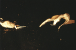 The two shapes contrast starkly with the black background. They appear weightless and ethereal with an inner glow. The artist has provided her own translation. (Nicole Wang '26).