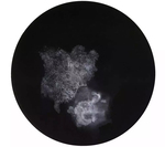 The "Luminaries" series was created over the period from 2013 to 2015. Compared to her previous artwork, Fairies, which black ink on the light brown paper, the artist used white acrylic paint on black paper, which breaks the traditional medium and manner of ink painting. She used the refined brushwork, lines, and dots to create contrast between the dark and light and emphasize the luminous creatures. The artwork not only explores the materialization of imagined life, but also joins poetry on the back of every image. The poetry was created in the poetry slam held by the artist. The audience wrote the poetry, and the artist matches it to each creature. For example, 汝 Ru (Quiet Waters), "You invented air/Because it knows no dampness"; 淢 Yu (Hidden Flow), "Rapids, marvelously, pregnant with a mellow son/He sees the world as flowing white elephants"; 湫 Qiu (Deep Pool), "It sank downward under giant clauds/I have never been there/I have never left/It is a place for the absence and presence of self/Go on through the waves/I just drop by". Every creature’s Chinese title includes the water radical, 氵. And connecting to the image gives people a feeling of being in water. (Sources: Amjad MajidSee. "The Unseen World: The Art of Bingyi", 2015; artist's website: http://www.bingyi.info/). (Angela Tan 28')